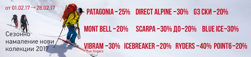 И така, в средата на сезона в Basecamp ви очаква страхотна екипировка на още по-страхотни цени! Patagonia -25%, Directalpine -30%, ските от G3 Genuine Guide Gear с -20%, MontbellJP -20%, SCARPA от -30% до -20%, blue ice -30%, Vibram FiveFingers -30%, Icebreaker -20%, Ryders Eyewear -40%, Point6 -20%! Сега е моментът да се възползвате от намаленията! Очакваме ви на бул. Черни връх 90, Стамболийски 46 и на онлайн магазина ни тук!