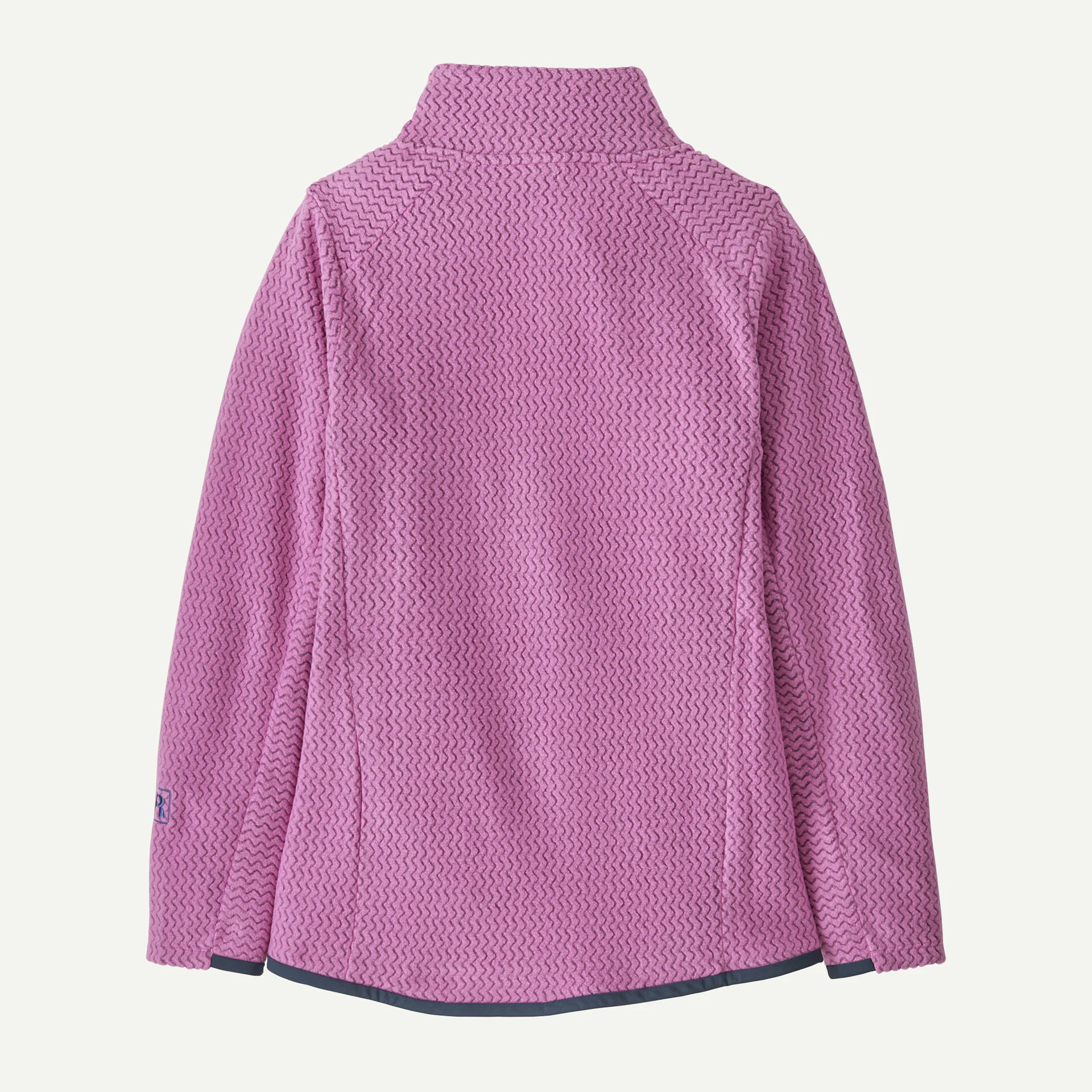 Материята е изработена от 100% рециклиран полиестер жакард флийс с кухи нишки и има уникална зигзагообразна текстура, която отвежда влагата, съхне бързо и е силно дишаща — идеална за активности с високо натоварване.
