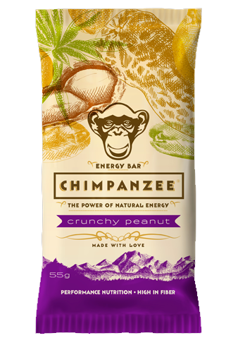 Ново поколение енергийни десерти пълни с изненади. Насладете се на енергиен бар с чудесен вкус изпълнен с хрупкави фъстъци и соев протеин. Chimpanzee Energy Bar Crunchy peanut съдържа високо количество протеинии и фибри и е отличен източник на натурална енергия.