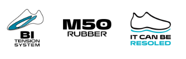Системата Bi-Tension минава под пръстите на краката и се изтегля назад през свода на стъпалото, за да осигури страхотна гъвкавост с леко напрежение.