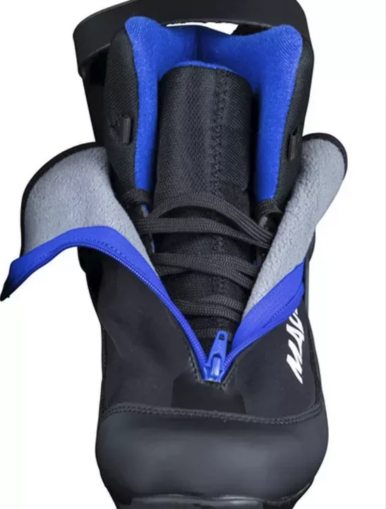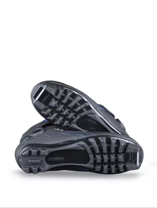 Обувки за туризъм както за кънки, така и за класическа техника на поддържани пътеки с гъвкав преден крак за класическо крачене и поддържащ маншет на глезена за пързаляне.