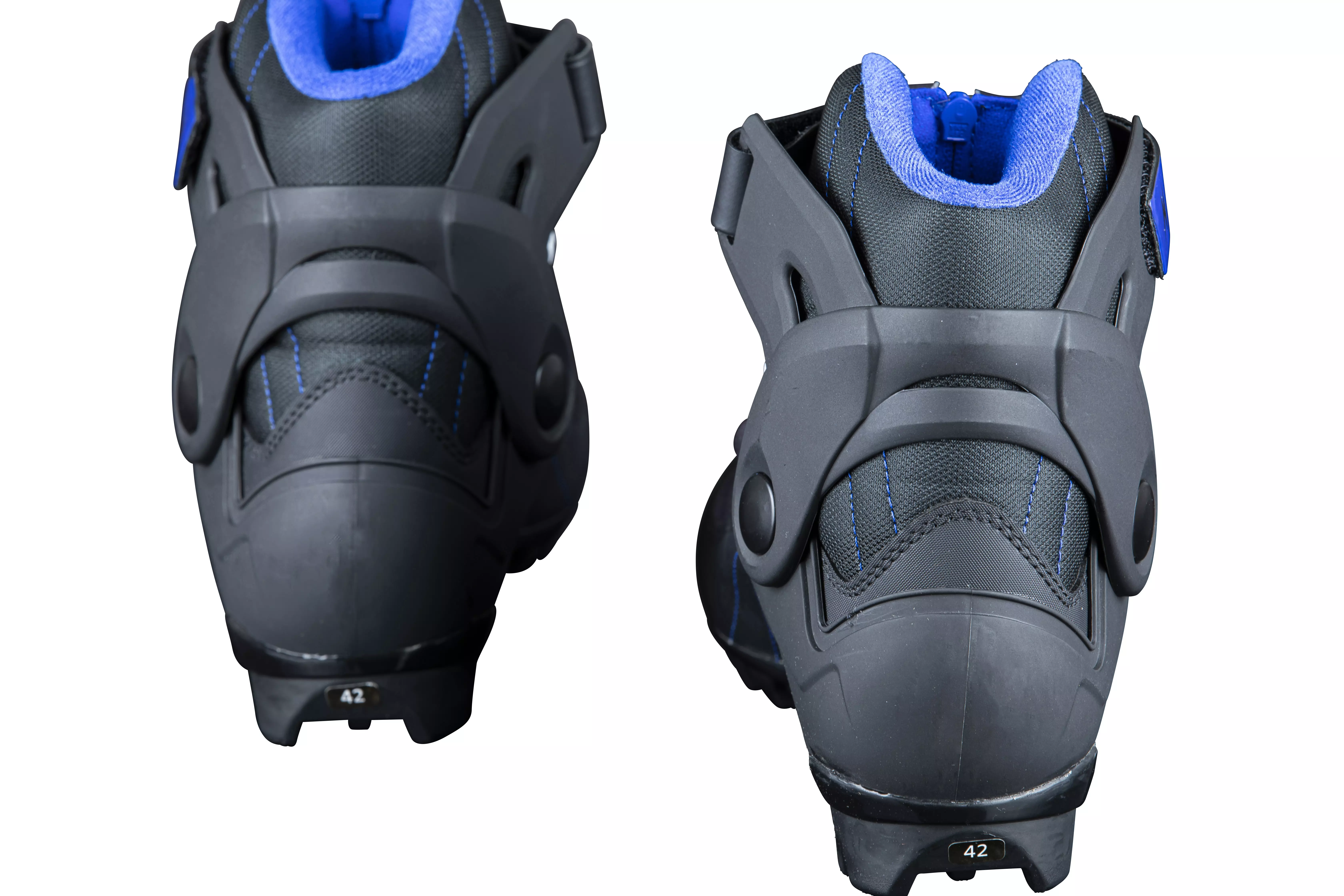 Обувки за туризъм както за кънки, така и за класическа техника на поддържани пътеки с гъвкав преден крак за класическо крачене и поддържащ маншет на глезена за пързаляне.