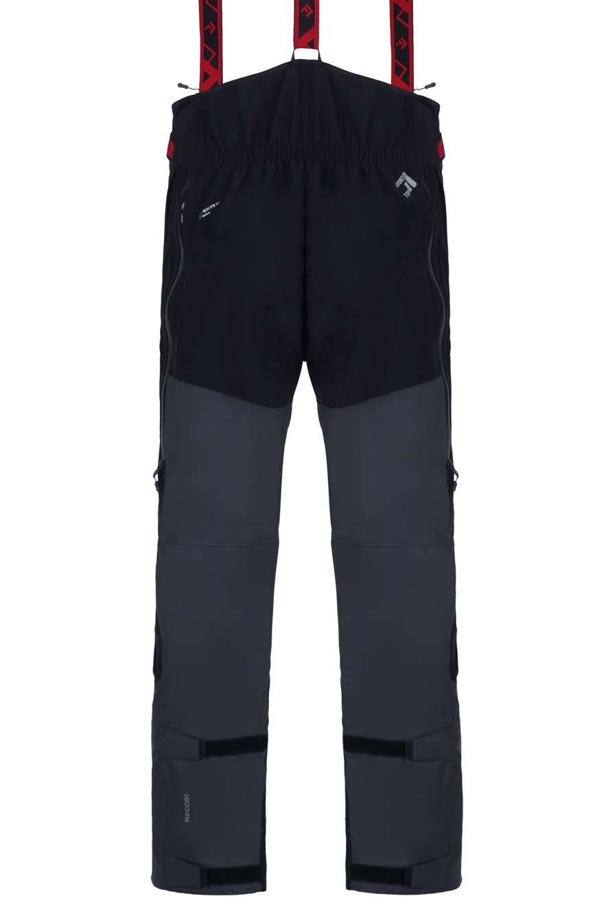 - Подсилката от кевлар от вътрешната страна на долната част на крачолите предпазва от повреди от ръбове на ски, точки на рамо и камъни.