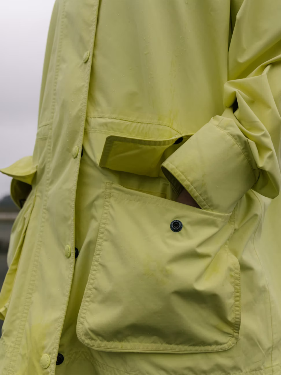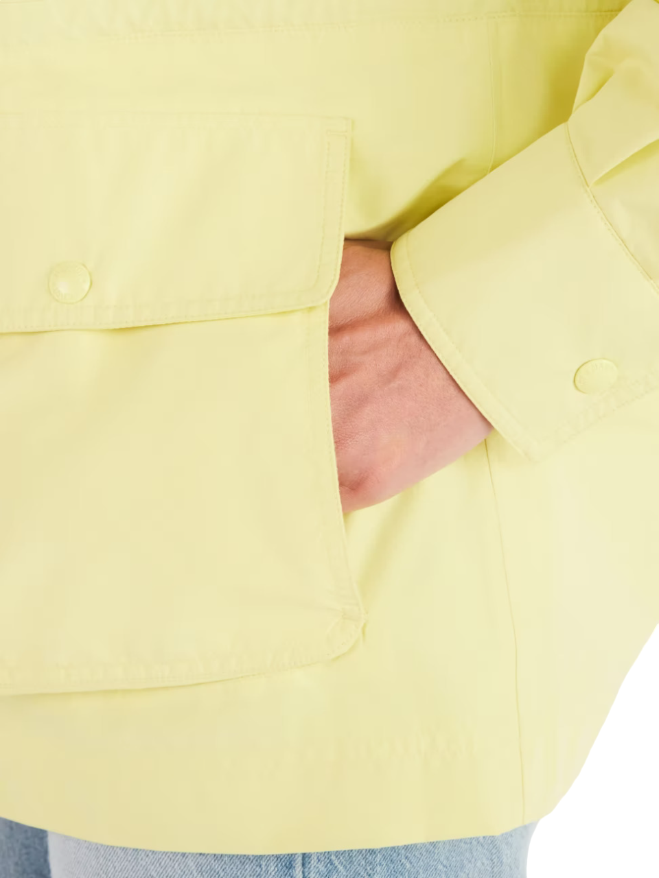 - Джобовете за ръце с мех и затваряне с щракване ви осигуряват място за съхранение, което изглежда елегантно и предпазва вашите вещи от времето