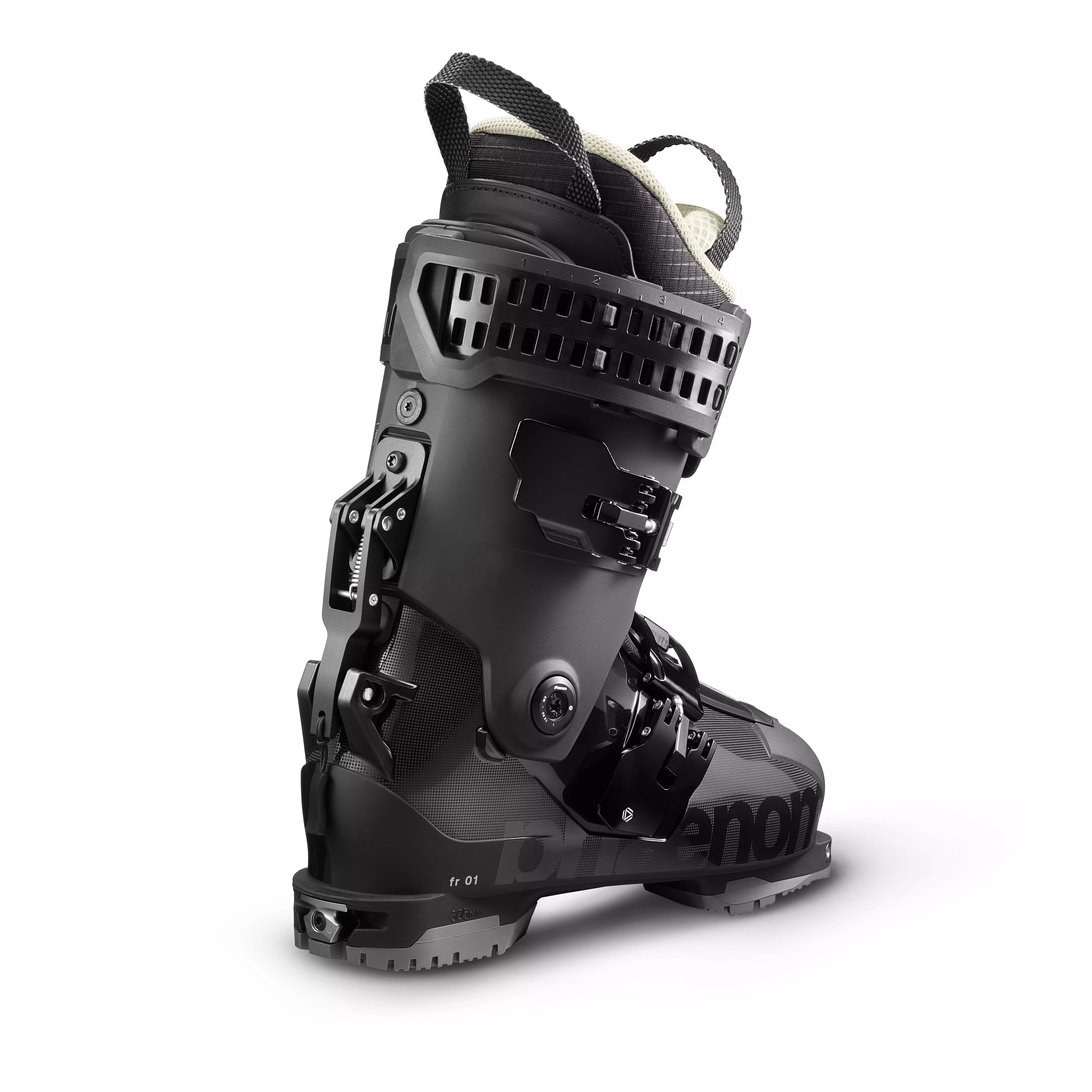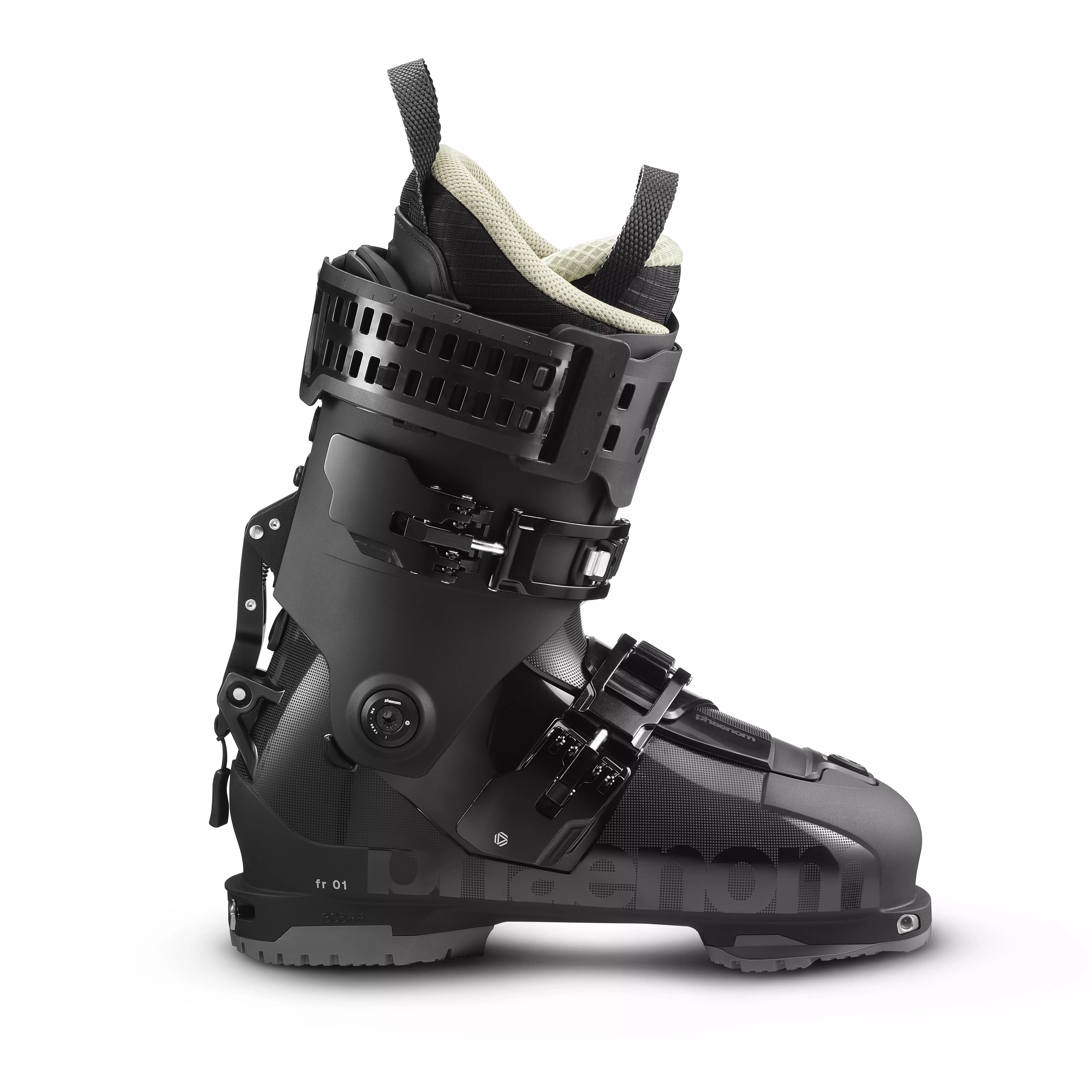 FR 01 110 е фрийрайд обувка, създадена за тези, които търсят както комфорт, така и представяне на високо ниво. Този изцяло нов модел ски обувка е едновременно гъвкав и прецизен като усещане. Иновативната хибридна конструкция cabrio / overlap съчетава най-доброто от двата свята: плътното прилягане и контрола върху кантовете на overlap дизайна, както и прогресивния флекс на триделната конструкция. В комбинация с патентования (в процес на одобрение) Phaenom Strap, FR 01 110 осигурява отскок, абсорбиране на ударите и изключителен контрол върху флекса. Еластичността на каишката генерира осезаем отскок при завоите, което води до по-добро предаване на енергията, прецизно инициране на завоя, повишен комфорт и предсказуемост. Елегантният изцяло черен дизайн подпомага възстановяването и повторното използване на обувката и нейните компоненти. Всеки елемент от този продукт — от панелите до щраймерите, каишките и винтовете — е проектиран така, че да бъде поправим и рециклируем.