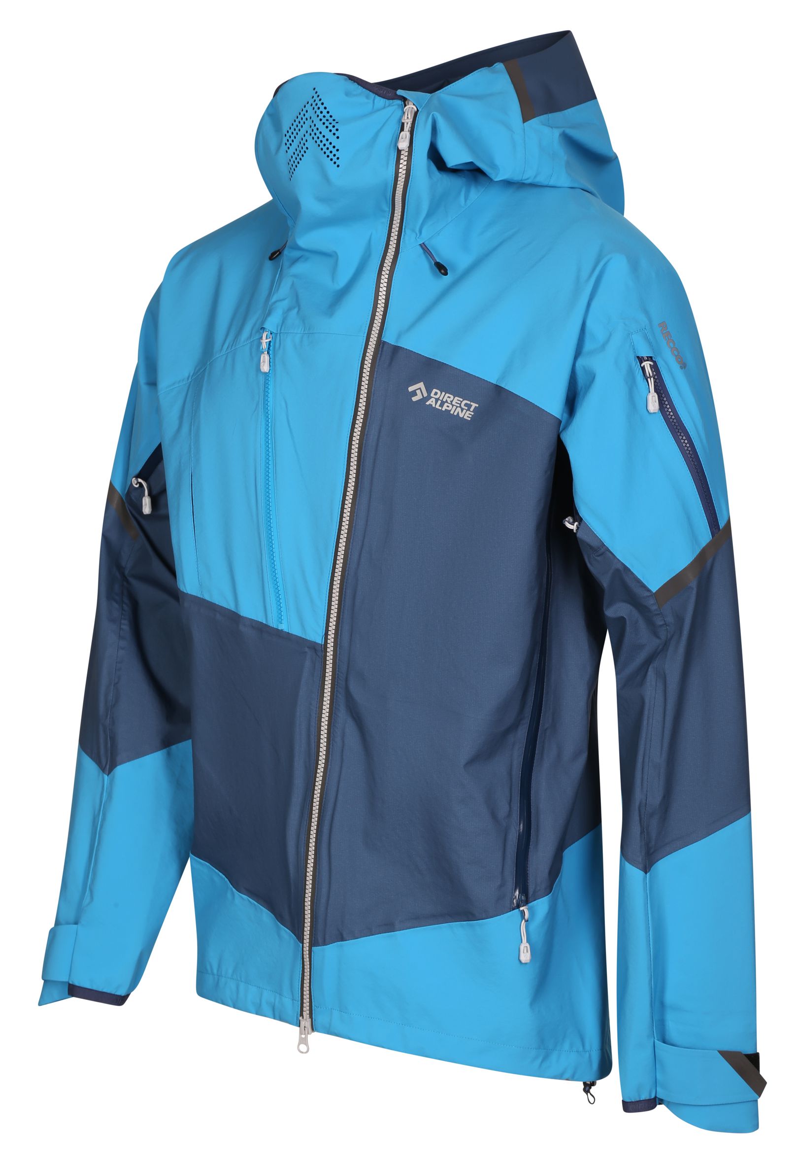 - Голям преден джоб, един вътрешен джоб с цип, допълнителен джоб на ръкава с рефлектор за Recco® система.