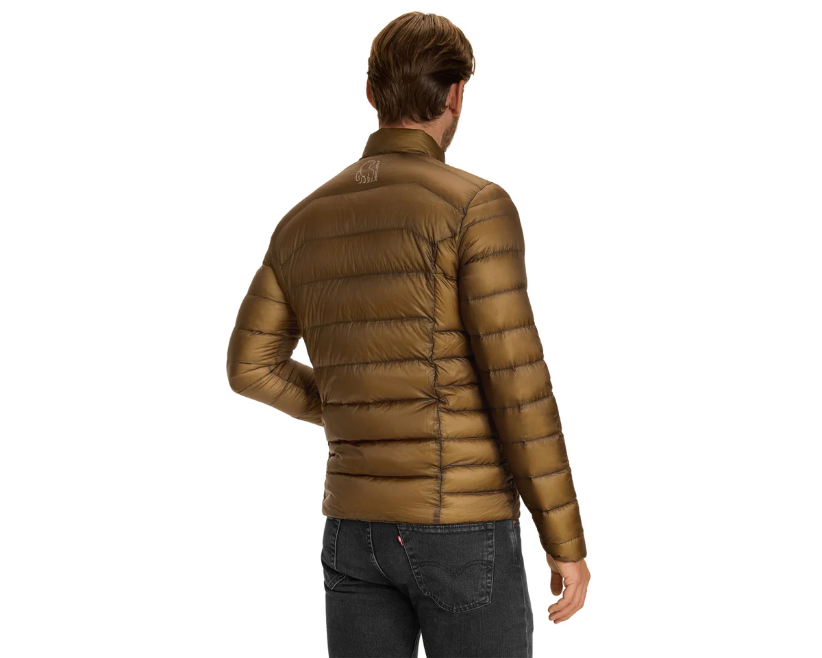 Ексклузивният пух е обвит от нашата запазена марка - 7D ултралек рип-стоп найлон, който осигурява общо тегло на якето от само 182 грама (размер L) и го прави едновременно изключително леко и забележително издръжливо. Strato удобно се компресира надолу в един от предните джобове, превръщайки се в компактен пакет, идеален за пътуване, лесен за грайфериране и обличане като изолиращ междинен слой.