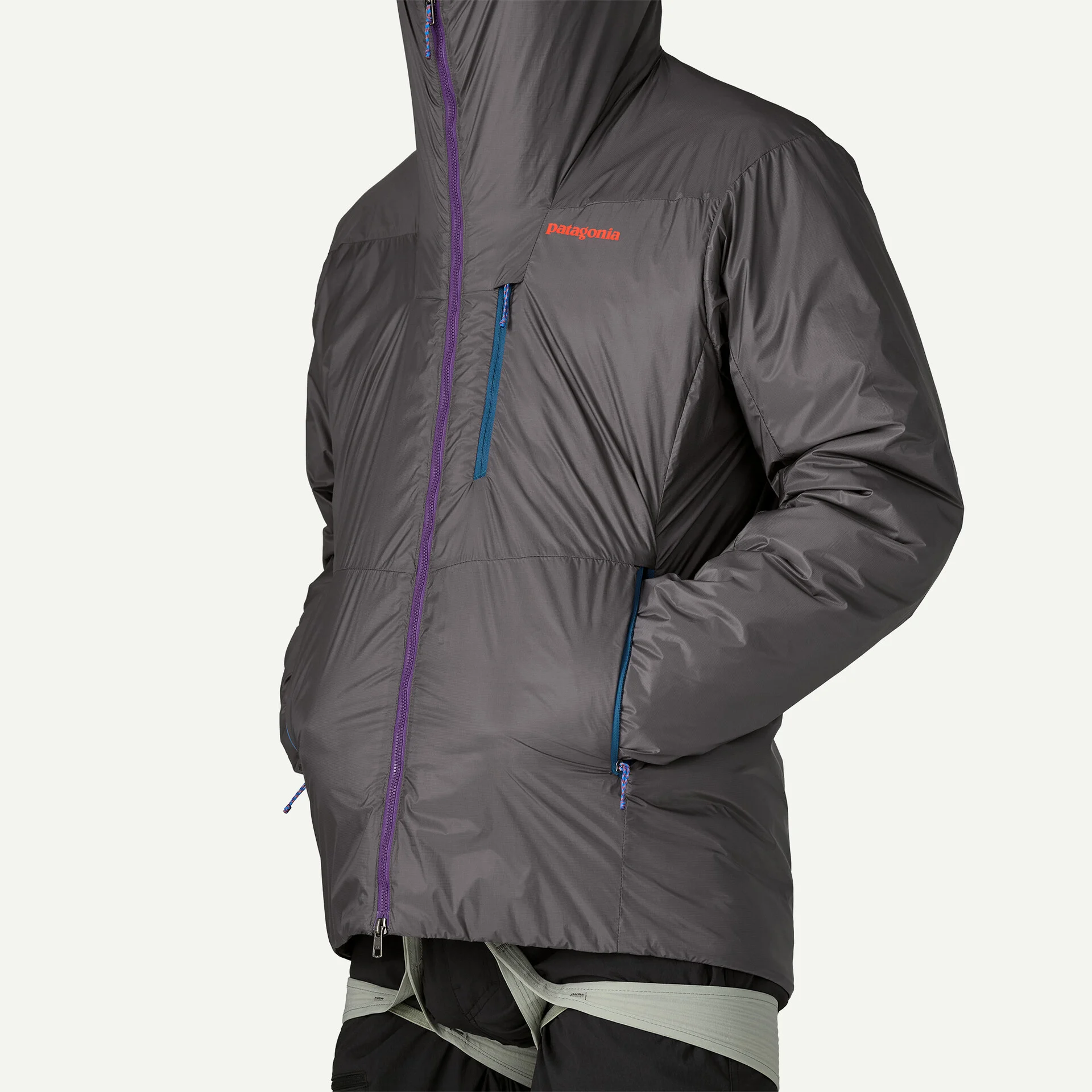Двупосочен, централен преден Vislon® цип, подкрепен с вътрешно капаче за вятър, позволява достъп до осигурителната примка