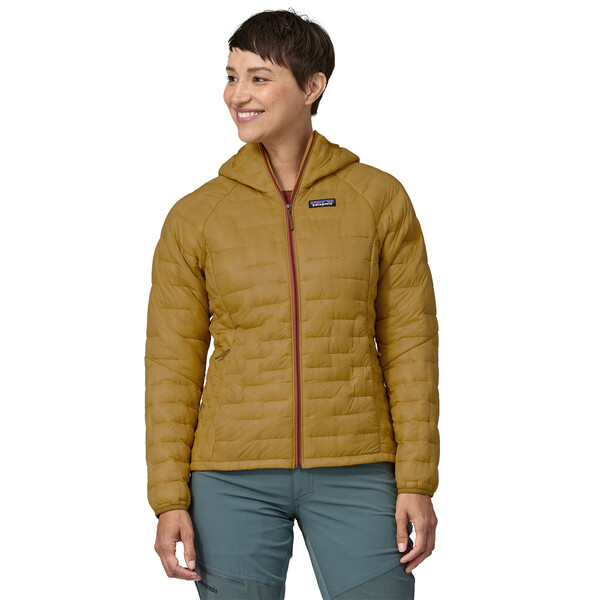 Micro Puff® Hoody е комбинация от ултралеката Pertex® Quantum мембранна материя и с PlumaFill изолация, в резултат на което якето е с най-доброто съотношение между тегло и топлинна изолация от произвдените якета досега от Patagonia. То е и с най-високо ниво на компресиране и намаляване на обема за прибиране в джоба в сравнение с всяко едно от техните синтетични якета. То е вашият излолационен слой за лоши метерологични условия и ниски температури. Мембранната материя е изработена от NetPlus® 100% пост консуматорски рециклиран ripstop найлон от рибарски мрежи, изолацията е от 100% рециклиран полиестер. Fair Trade Certified™ шивашко производство.