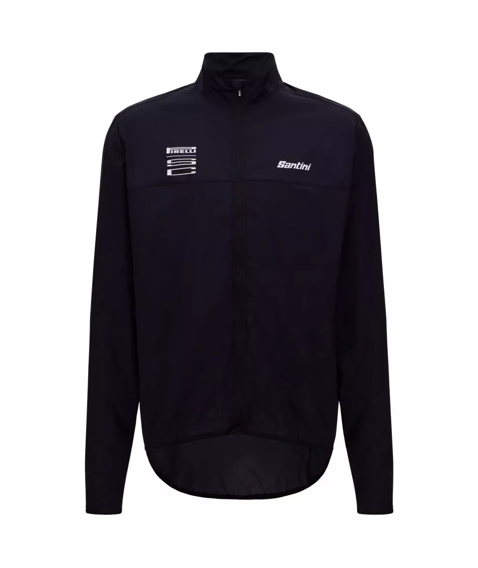 Проектирано с класическа кройка, то осигурява комфорт и свобода на движенията. Логата Pirelli SC и Santini са нанесени като матово черни силиконови трансфери.